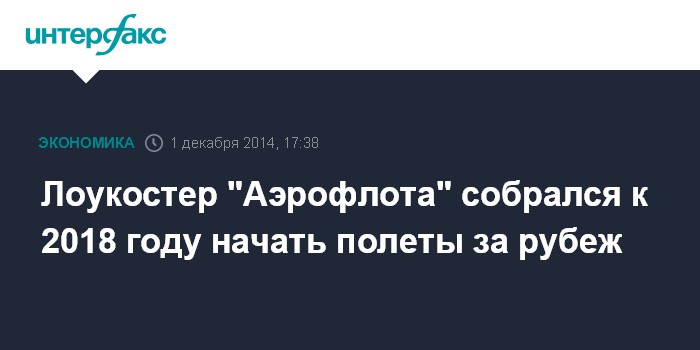 Лоукостер "Аэрофлота" собрался к 2018 году начать полеты за рубеж