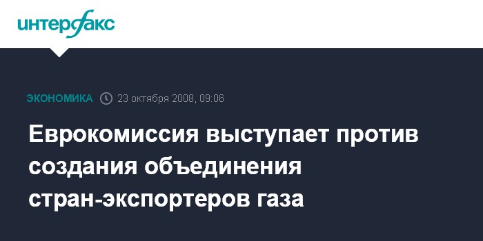 Москва. 23 октября. INTERFAX.RU - В Европейской Комиссии (ЕК) отрицательно относятся к идее создания объединения стран-экспортеров газа, заявил в среду представитель ЕК Ферран Таррадельяс.