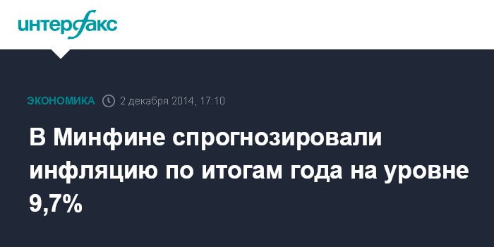 Москва. 2 декабря. INTERFAX.RU – Инфляция в России в 2014 году будет на уровне 9,7%, в 2015 году она снизится до чуть менее 7%, считает глава департамента долгосрочного стратегического планирования Минфина РФ Максим Орешкин.