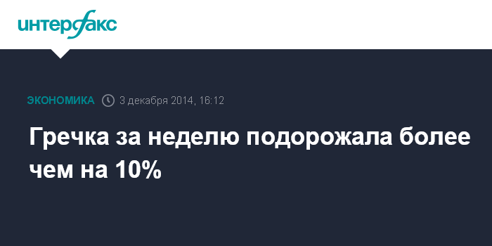 Москва. 3 декабря. INTERFAX.RU - Рост цен на гречневую крупу на российском рынке на минувшей неделе замедлился до 10,3% с 16,3% неделей ранее, сообщил Росстат в среду. С начала года цены на гречку в России выросли на 49,8%.