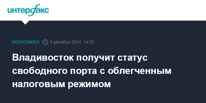 Москва. 4 декабря. INTERFAX.RU – Владивосток может получить статус "свободного порта".