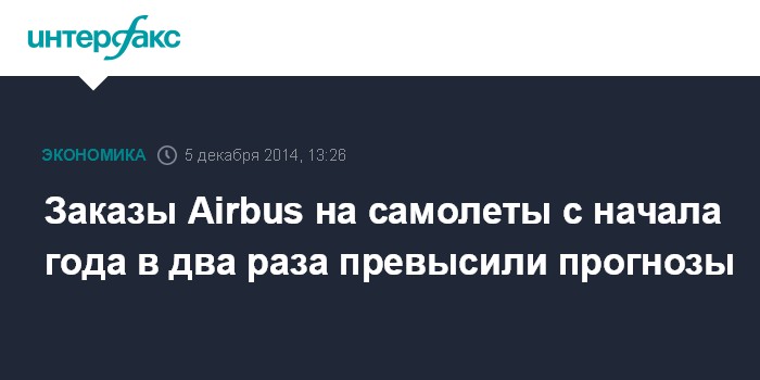 За 11 месяцев 2014 года Airbus получил заказы на 1328 самолетов, что превосходит почти вдвое исходный прогноз на этот год.
