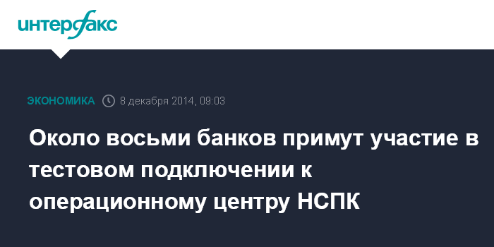 Около восьми банков примут участие в тестовом подключении к операционному центру НСПК