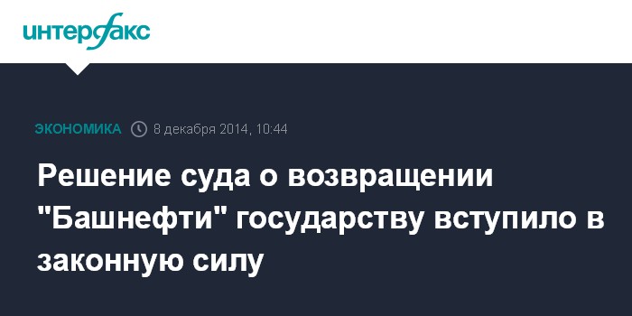 Решение суда о возвращении "Башнефти" государству вступило в законную силу