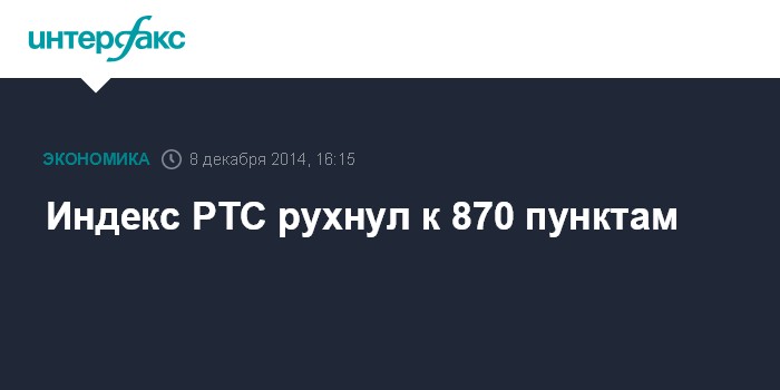 Москва. 8 декабря. INTERFAX.RU - Долларовый индекс РТС, один из основных российских фондовых индикаторов, днем в понедельник ускорил снижение на фоне роста доллара и падения нефти, упав в район 870 пунктов - до нового минимума с июля 2009 года.