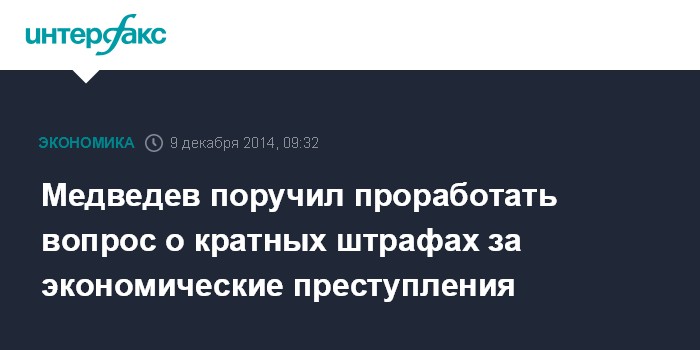 Медведев поручил проработать вопрос о кратных штрафах за экономические преступления