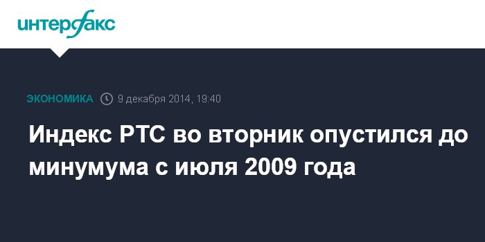 Индекс РТС во вторник опустился до минумума с июля 2009 года