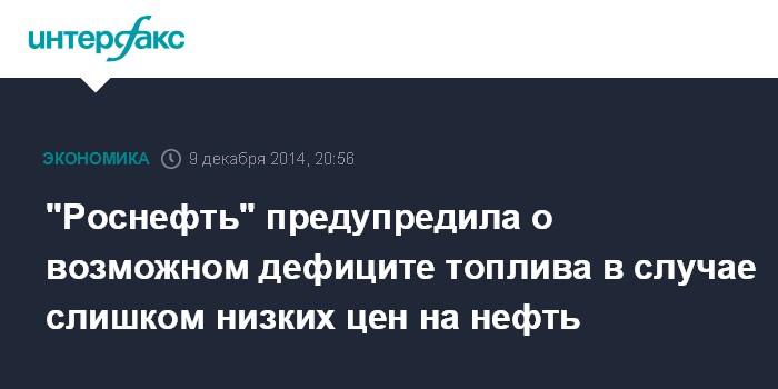 "Роснефть" предупредила о возможном дефиците топлива в случае слишком низких цен на нефть
