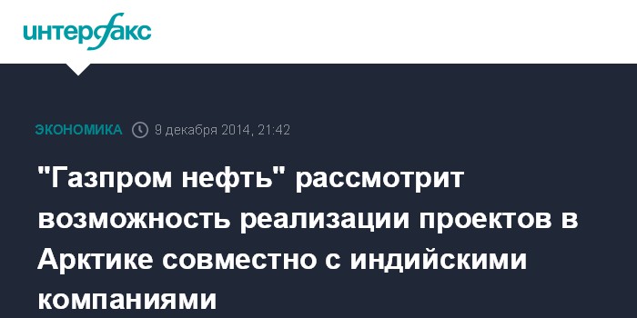 Москва. 9 декабря. INTERFAX.RU - "Газпром нефть" интересуется партнерством с индийскими нефтегазовыми компаниями для реализации арктических проектов в России, сообщил президент РФ Владимир Путин в интервью индийскому информационному агентству PTI.