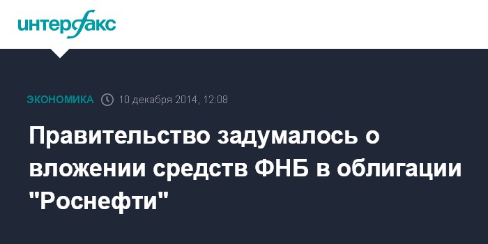 Москва. 10 декабря. INTERFAX.RU - Правительство России готово рассмотреть вопрос о целесообразности инвестирования средств Фонда национального благосостояния в облигации "Роснефти", если от компании поступит соответствующее обращение, сообщил глава Минфина Антон Силуанов.