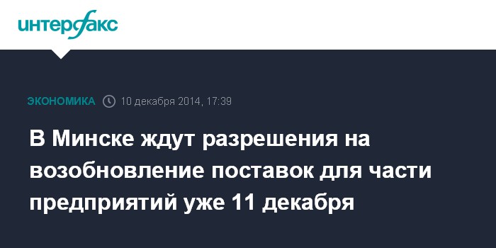 В Минске ждут разрешения на возобновление поставок для части предприятий уже 11 декабря