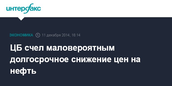ЦБ счел маловероятным долгосрочное снижение цен на нефть