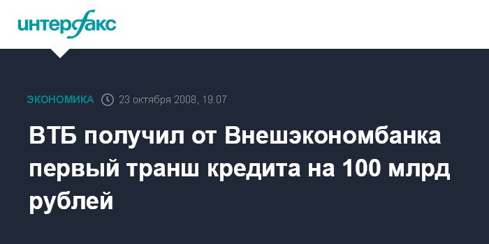 ВТБ получил от Внешэкономбанка первый транш кредита на 100 млрд рублей