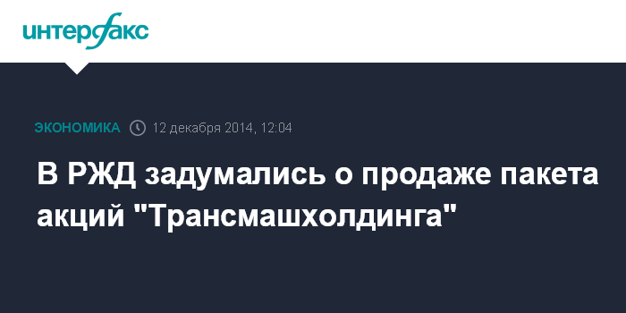 "Сейчас, когда возникли два производителя основных - "Синара" и "Трансмашхолдинг" - в этом (во владении РЖД акциями "Трансмашхолдинга" - ИФ) нет необходимости", - сказал президент РЖД. Потенциальных покупателей пакета он раскрывать не стал.