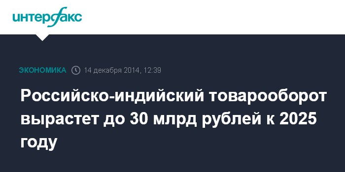 Российско-индийский товарооборот вырастет до 30 млрд рублей к 2025 году