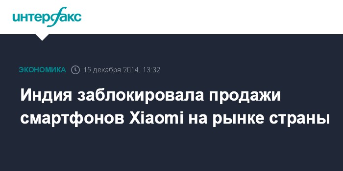 Москва. 15 декабря. INTERFAX.RU – Суд в Дели вынес запрет на продажу смартфонов китайской Xiaomi на территории Индии, что, по мнению экспертов, может существенно затормозить продвижение компании за пределами КНР, пишет MarketWatch.