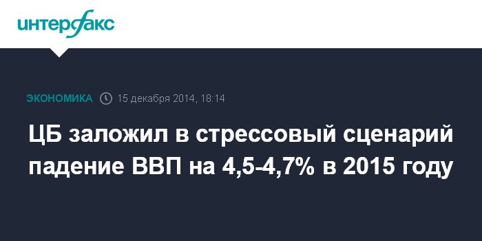 ЦБ заложил в стрессовый сценарий падение ВВП на 4,5-4,7% в 2015 году
