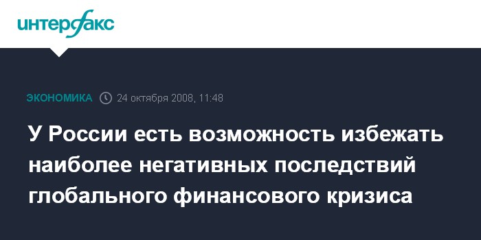 У России есть возможность избежать наиболее негативных последствий глобального финансового кризиса