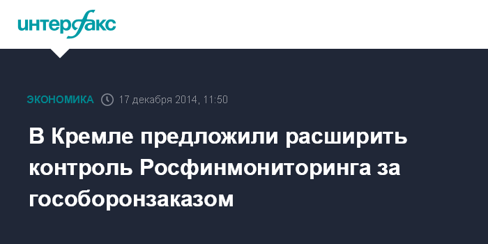 В Кремле предложили расширить контроль Росфинмониторинга за гособоронзаказом