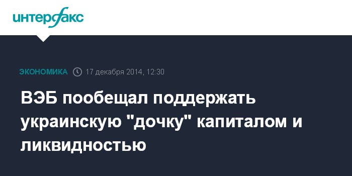 ВЭБ пообещал поддержать украинскую "дочку" капиталом и ликвидностью