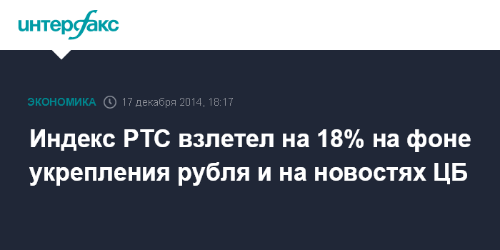 Индекс РТС взлетел на 18% на фоне укрепления рубля и на новостях ЦБ