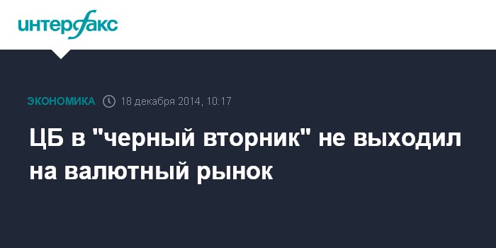Москва. 18 декабря. INTERFAX.RU – Банк России 16 декабря, в "черный вторник", когда доллар поднялся до 80 рублей, а евро – до 100 рублей, не осуществлял интервенций, свидетельствуют данные на сайте регулятора.