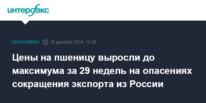 Ранее на этой неделе российский Минсельхоз сообщил о существенном повышении интервенционных цен на зерно, чтобы увеличить резервы пшеницы в условиях подъема цен на хлеб на фоне ослабления рубля.