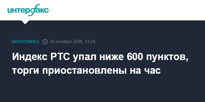 Индекс РТС упал ниже 600 пунктов, торги приостановлены на час