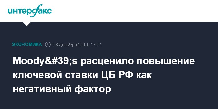 Москва. 18 декабря. INTERFAX.RU – Неожиданное повышение Банком России ключевой ставки до 17% годовых негативно отразится на российских банках, поскольку сделает фондирование более дорогим и сузит возможности кредитования, полагают аналитики Moody's Investors Service.