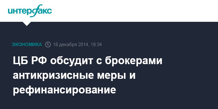 ЦБ РФ обсудит с брокерами антикризисные меры и рефинансирование