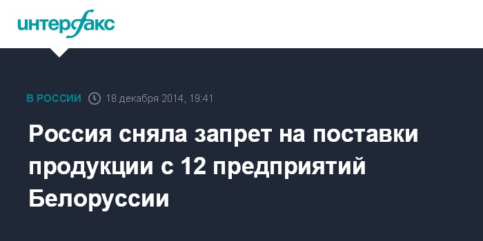 Россия сняла запрет на поставки продукции с 12 предприятий Белоруссии