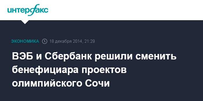 ВЭБ и Сбербанк решили сменить бенефициара проектов олимпийского Сочи