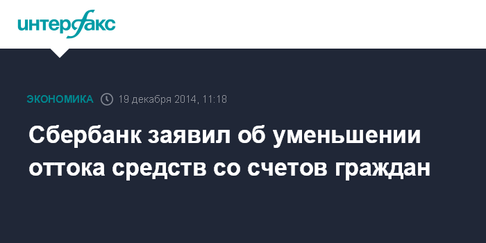 Москва. 19 декабря. INTERFAX.RU – Сбербанк России фиксирует спад в оттоке средств со счетов граждан, пик которого пришелся на четверг.