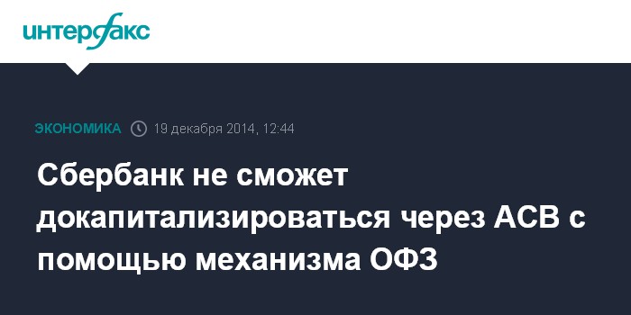 Сбербанк не сможет докапитализироваться через АСВ с помощью механизма ОФЗ