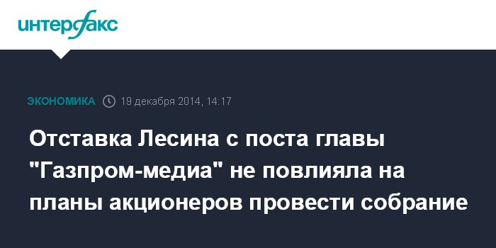 Отставка Лесина с поста главы "Газпром-медиа" не повлияла на планы акционеров провести собрание
