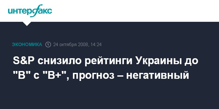 Москва. 24 октября. INTERFAX.RU - Международное рейтинговое агентство Standard & Poor‘s снизило суверенные рейтинги Украины, оставив прогноз по ним на уровне "негативный".
