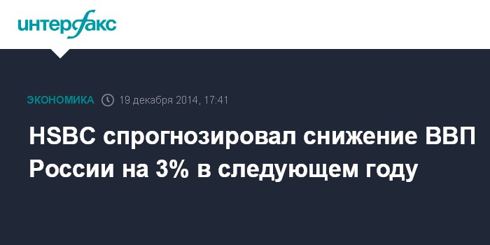 Москва. 19 декабря. INTERFAX.RU – Банк HSBC ухудшил макропрогноз по Россию и теперь ожидает снижения ВВП России в 2015 году на 3% (прежний прогноз минус 1%). Прогноз на 2016 год остался без изменения - падение на 1,5%.