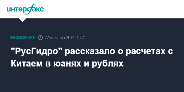 "РусГидро" рассказало о расчетах с Китаем в юанях и рублях