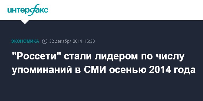 "Россети" стали лидером по числу упоминаний в СМИ осенью 2014 года