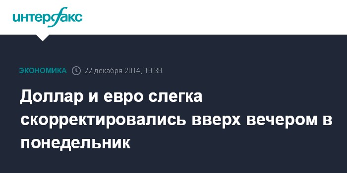 Москва. 22 декабря. INTERFAX.RU - Доллар США и евро слегка скорректировались вверх на Московской бирже в вечерние часы торгов в понедельник, но все равно остались в заметном минусе по отношению к рублю на фоне роста спроса на рублевую ликвидность в начавшийся налоговый период.