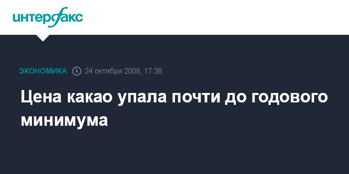 Нью-Йорк. 24 октября. INTERFAX.RU - Цена какао упала почти до минимума за год на фоне опасений, что замедление темпов роста мировой экономики приведет к снижению спроса, сообщает агентство Bloomberg.