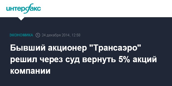 Бывший акционер "Трансаэро" решил через суд вернуть 5% акций компании