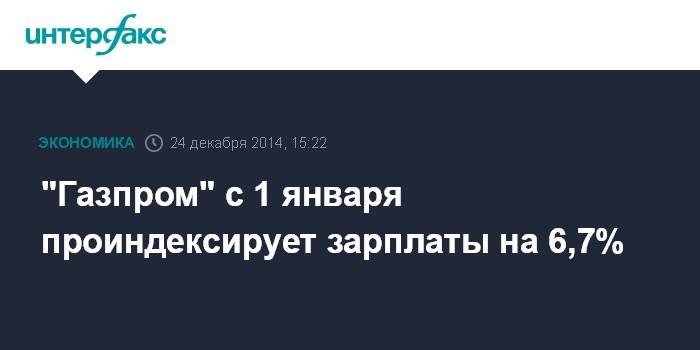 "Газпром" с 1 января проиндексирует зарплаты на 6,7%