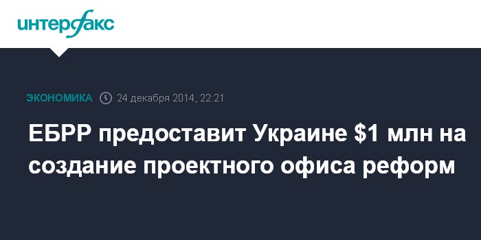 Москва. 24 декабря. INTERFAX.RU - Европейский банк реконструкции и развития (ЕБРР) выделяет Украине $1,08 млн на создание проектного офиса реформ, сообщил заместитель главы администрации президента Украины Дмитрий Шимкив.