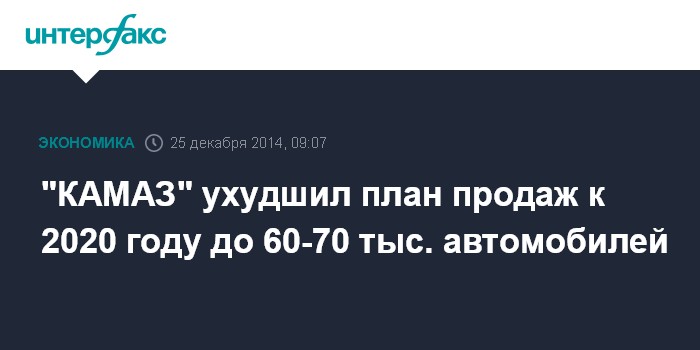 Москва. 25 декабря. INTERFAX.RU - Совет директоров "КАМАЗа" на заседании в среду одобрил актуализированную стратегию развития компании до 2020 года. План продаж к 2020 году был ухудшен.