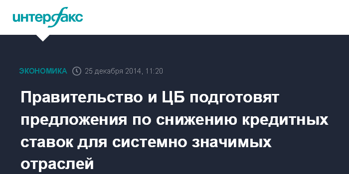 Правительство и ЦБ подготовят предложения по снижению кредитных ставок для системно значимых отраслей