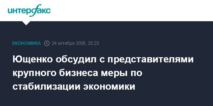 Москва. 24 октября. INTERFAX.RU - Президент Украины Виктор Ющенко обсудил с представителями крупного национального бизнеса меры по стабилизации украинской экономики и минимизации влияния на нее мирового финансового кризиса, сообщает пресс-служба главы государства.