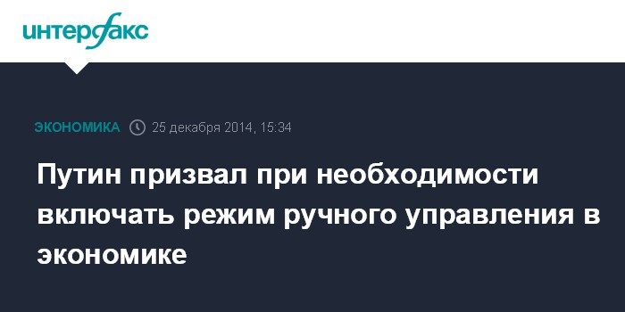 Москва. 25 декабря. INTERFAX.RU - Президент России Владимир Путин заявил, что при необходимости нужно включать режим ручного управления в экономике.