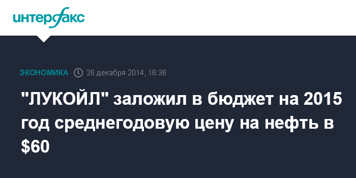 "ЛУКОЙЛ" заложил в бюджет на 2015 год среднегодовую цену на нефть в $60