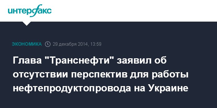 Москва. 29 декабря. INTERFAX.RU – Президент "Транснефти" Николай Токарев не видит перспектив для нормального возобновления работы нефтепродуктопровода на территории Украины. Об этом он сообщил на экспертном совете трубопроводной компании.